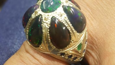 خاتم فضة 925 مع روديوم متوج ب 7 احجار اوبال للطلب الخاص|0096181323265