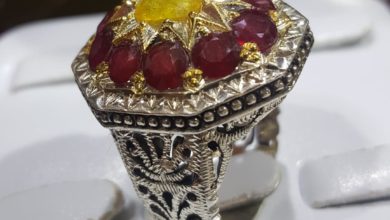 خاتم من عدة احجار كريمة مع شهادة للطلب الخاص|0096181323265 خاتم فضة 925 حفر يدوي مرصع ب 3 حبات ياقوت و4…