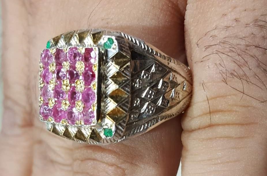 خاتم فضة مع روديوم 16 حبة ياقوت 4 حبات زمرد للطلب الخاص|0096181323265