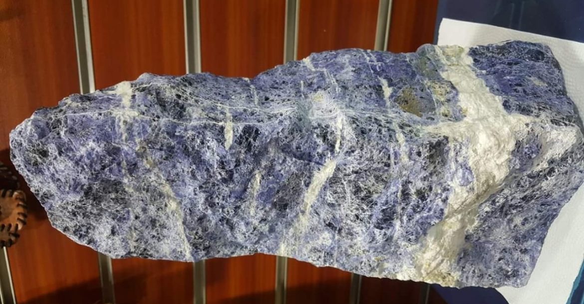 حجر سوداليت (SODALITE) طول 33 سم عرض 18 سم وزن 6.700 غرام للطلب الخاص
