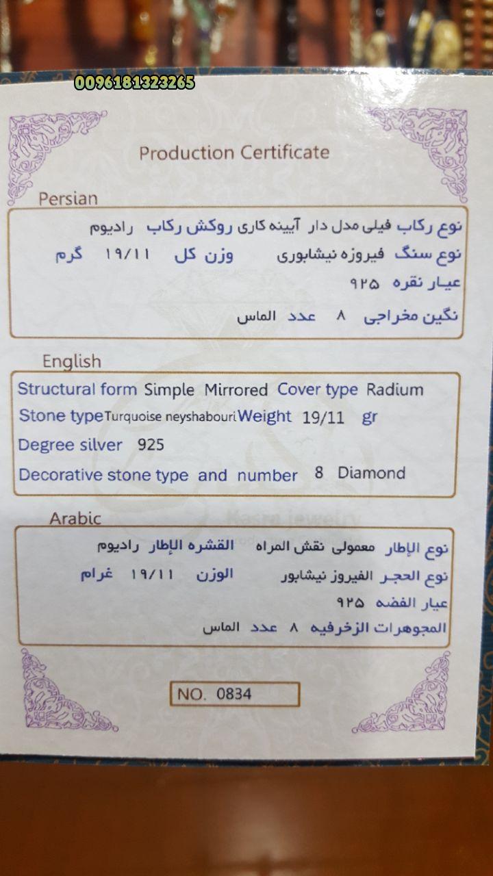 خاتم حجر فيروز نيشابور أصلي مع شهادة للطلب الخاص