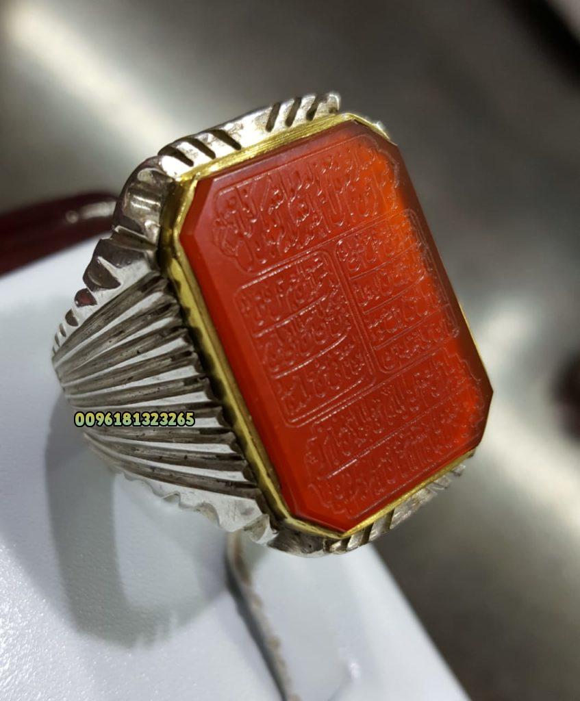 خاتم عقيق زعفراني منقوش عليه (سور القلاقل الاربعة صياغة ثقيلة)