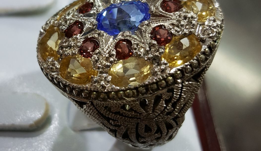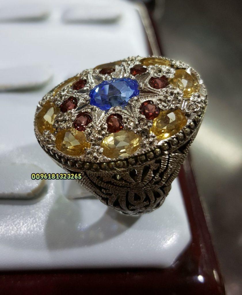 خاتم صياغة فاخرة مرصع بال غارنيت وال توباز للطلب الخاص|0096181323265