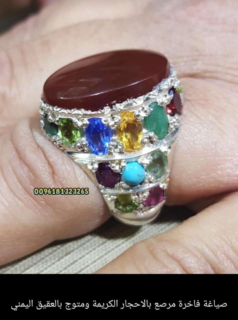 خاتم مرصع بالأحجار الكريمة ومتوج بالعقيق اليماني للطلب الخاص|0096181323265