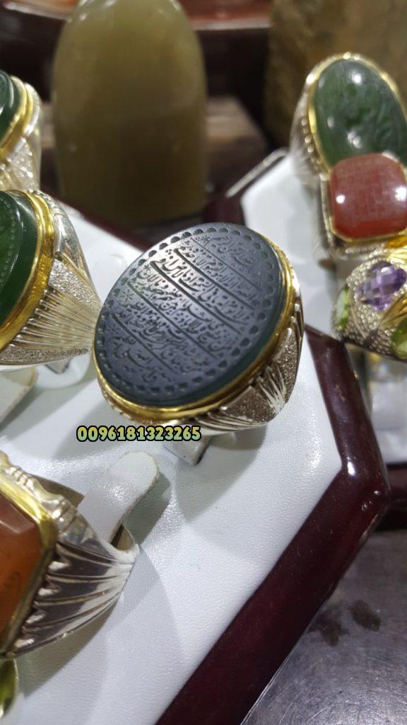خاتم عقيق يماني اخضر النقش: اية الكرسي للطلب الخاص|0096181323265