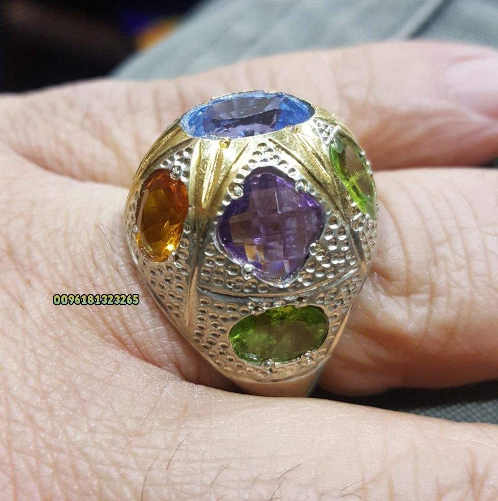 خاتم توباز وزبرجد واماتيست وسترين للطلب الخاص|0096181323265